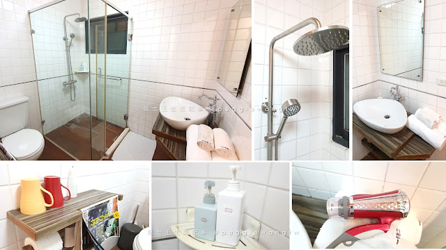 民宿主人提醒,浴室地磚可是木紋地磚,並非木板,不用擔心(XD)
